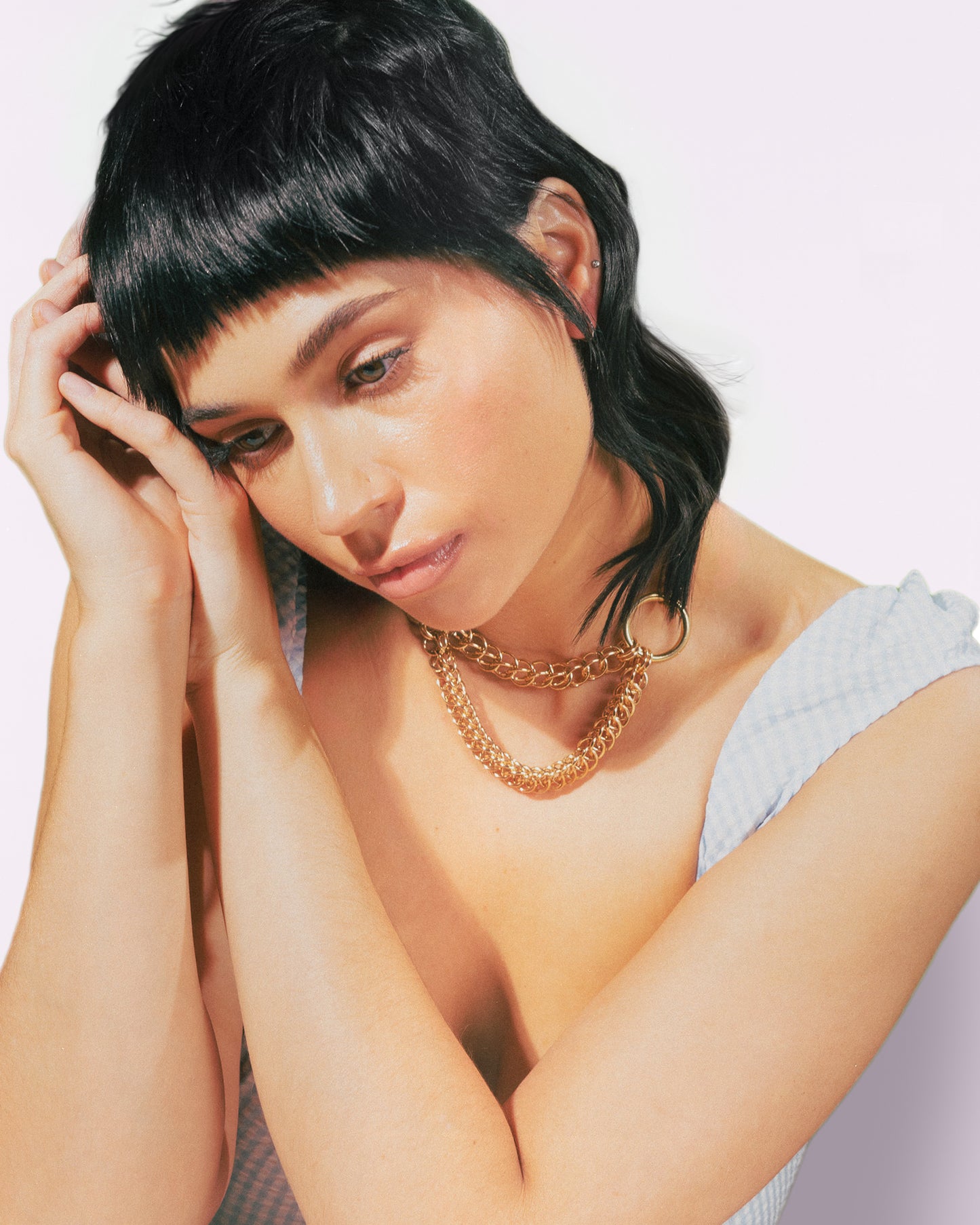 Handwoven from polished jeweler’s brass rings, the Moonchild Necklace in brass features a gold-plated stainless steel clasp. Sculptural and open, with a soft, flowing structure.