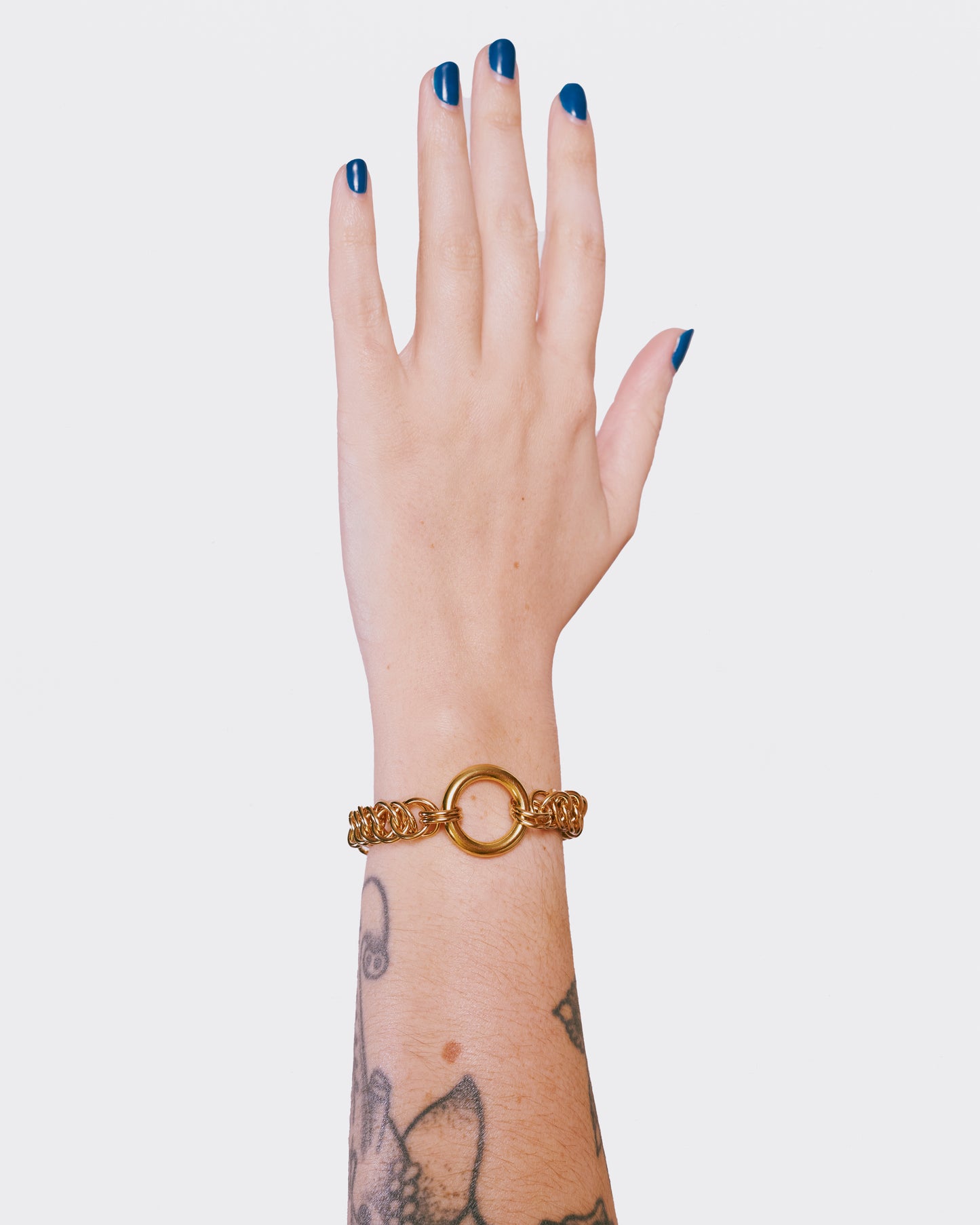 Handwoven from polished jeweler’s brass rings, the Dove Bracelet in brass features a gold-plated stainless steel clasp. Durable and comfortable, designed for everyday wear.