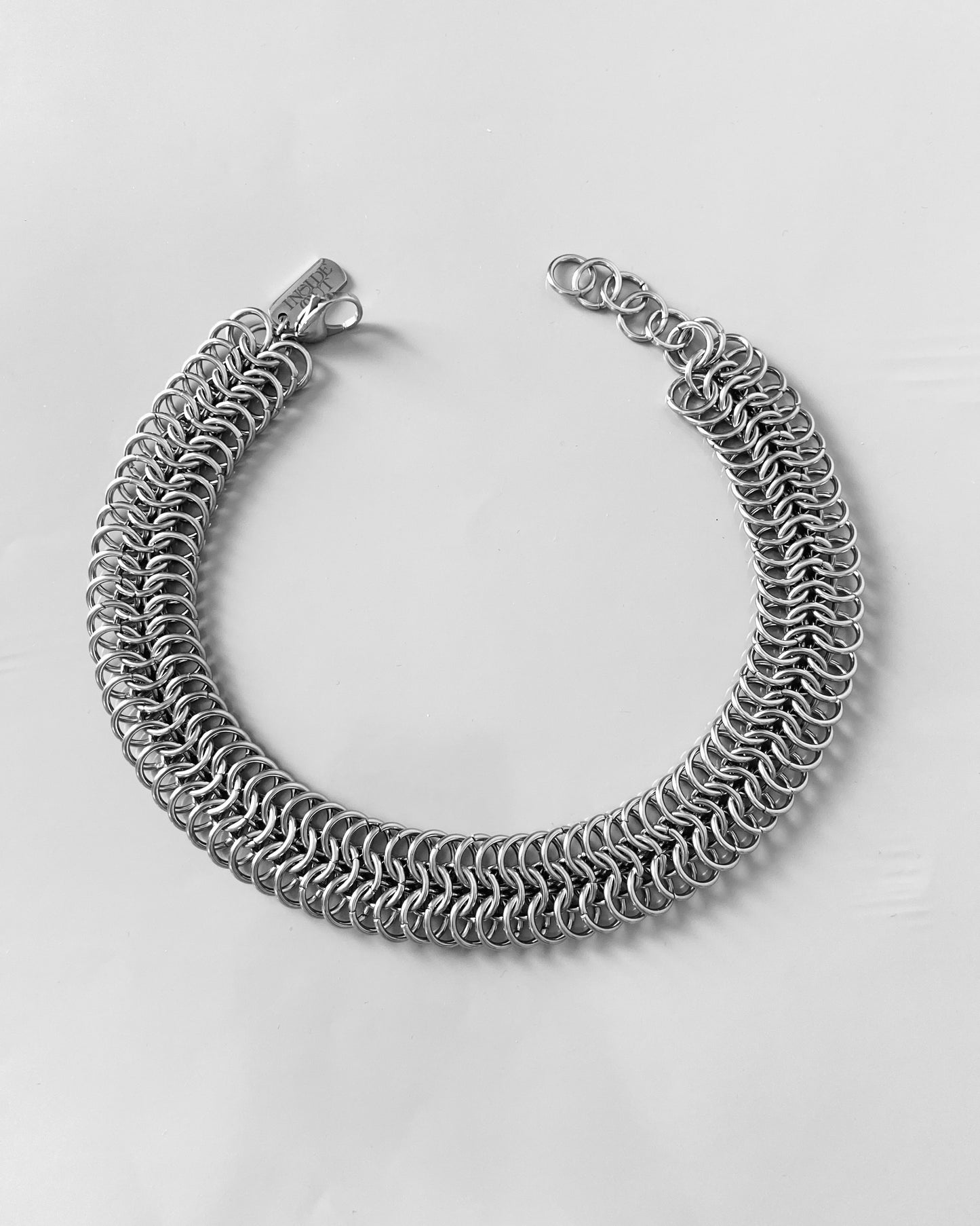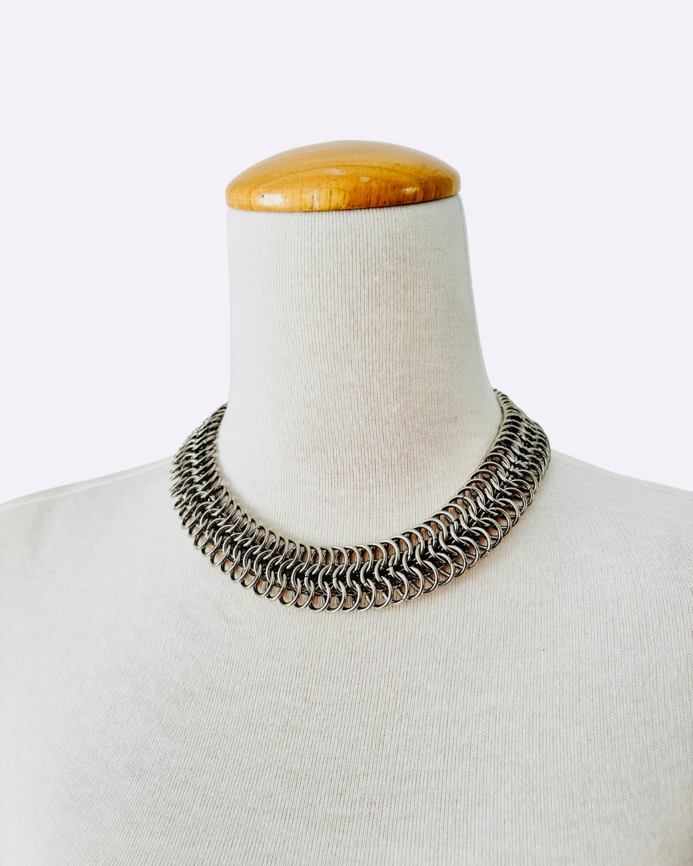 Handwoven from polished stainless steel rings, the Lilith Necklace features a stainless steel clasp. Bold and minimalist, made to make a statement.