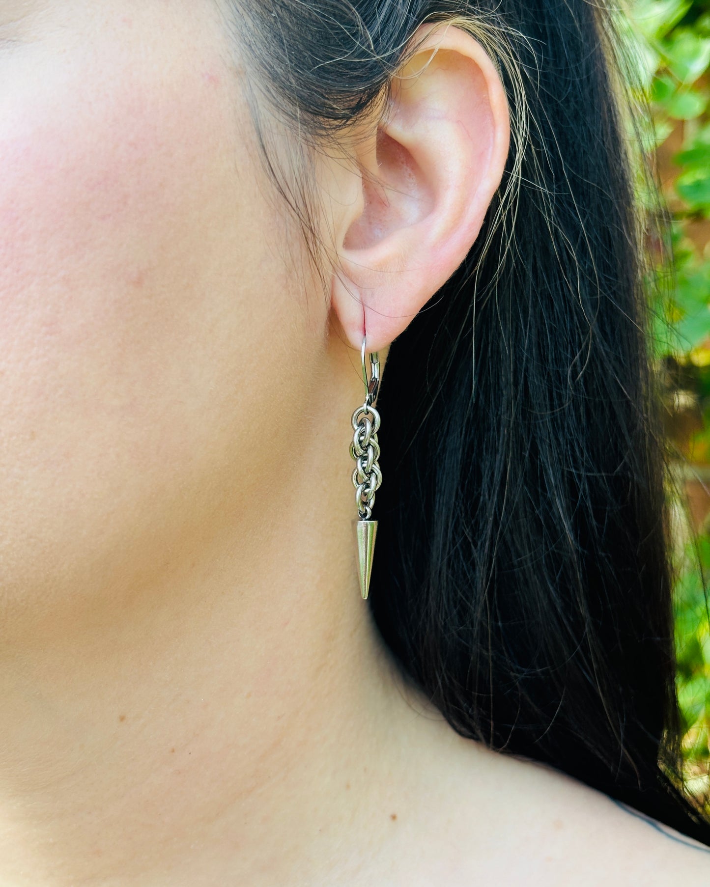 The Siren Earrings are made from stainless steel and feature stainless steel spikes, finished with stainless steel leverbacks. Designed to be lightweight and comfortable.