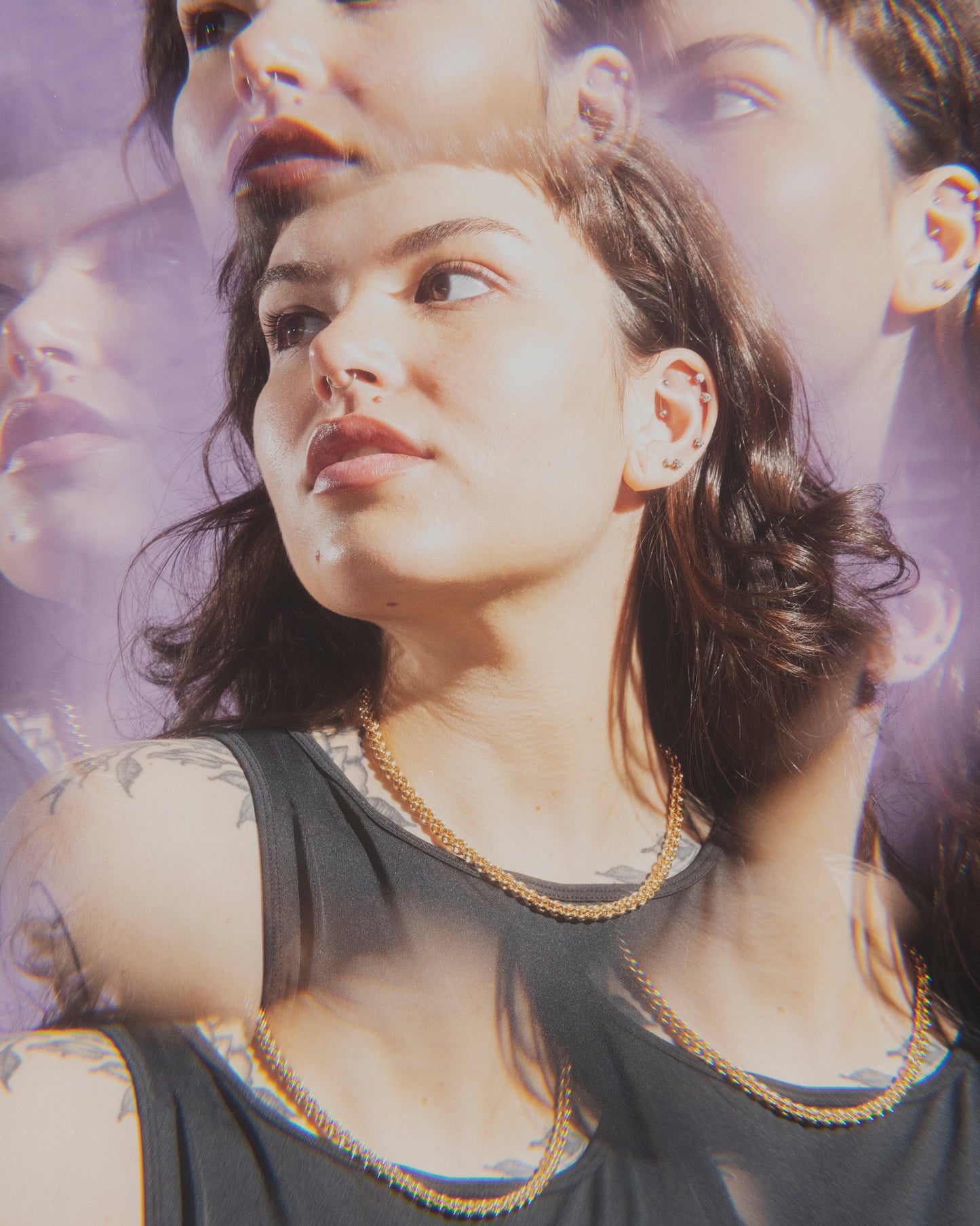 Handwoven from polished jeweler’s brass rings, the Dawn Necklace in brass features a gold-plated stainless steel clasp. Lightweight and easy to layer with other pieces.